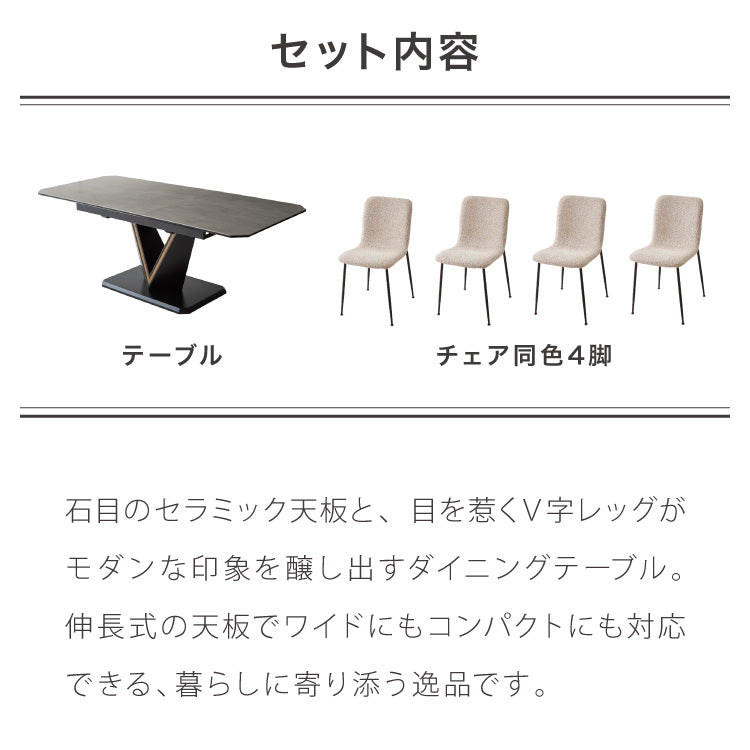セラミック 伸長式ダイニングテーブルセット 幅160~幅200 伸縮 ダイニング5点セット 4人掛け 伸縮テーブル モダン 伸長式 ダイニング 耐水 耐熱 白 艶消し 傷がつきにくい おしゃれ(代引不可)
