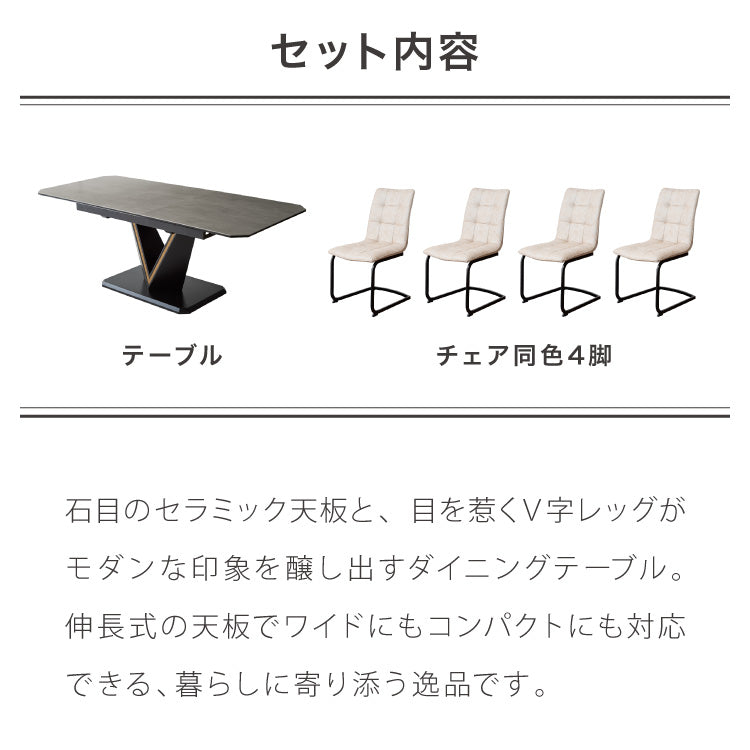 セラミック 伸長式ダイニングテーブルセット 幅160~幅200 伸縮 ダイニング5点セット 4人掛け 伸縮テーブル モダン 伸長式 ダイニング 耐水 耐熱 白 艶消し 傷がつきにくい おしゃれ(代引不可)