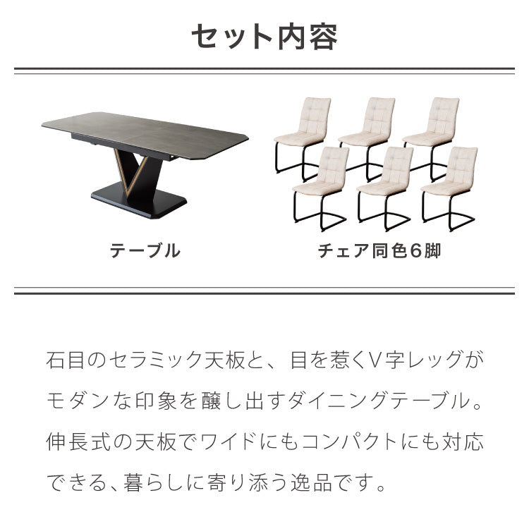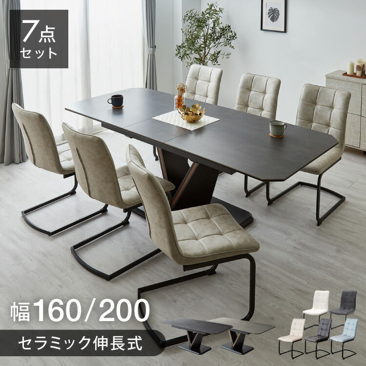 セラミック 伸長式ダイニングテーブルセット 幅160~幅200 伸縮 ダイニング7点セット 4人掛け 6人掛け 伸縮テーブル モダン 伸長式 ダイニング 耐水 耐熱 白 艶消し 傷がつきにくい おしゃれ(代引不可)