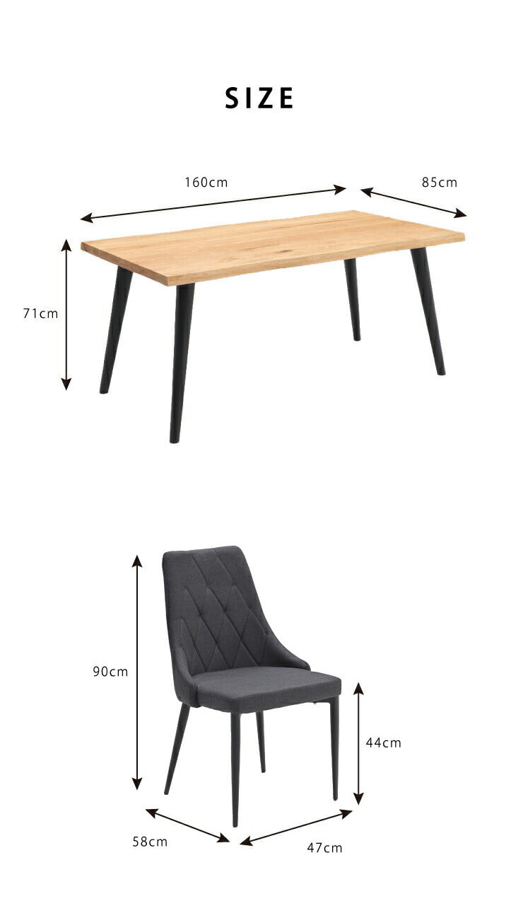 ダイニングテーブルセット ダイニング5点セット 4人掛け ダイニングセット 160×85 肘なし テーブル チェア 4脚 アイアン オーク(代引不可)