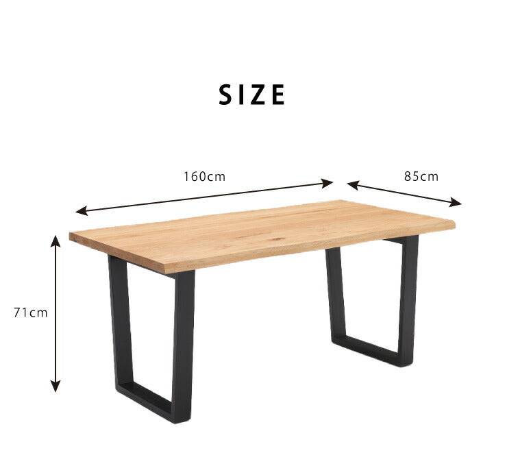 テーブルは天然木オーク無垢材を使用した表情豊かな耳付き天板です。