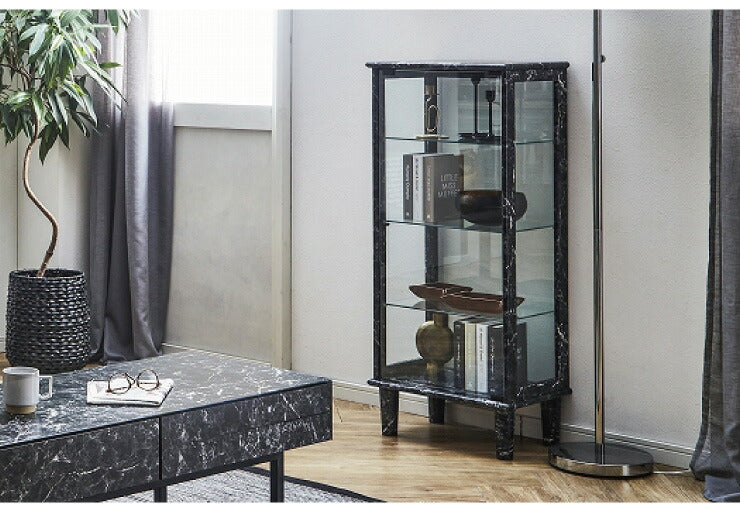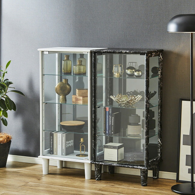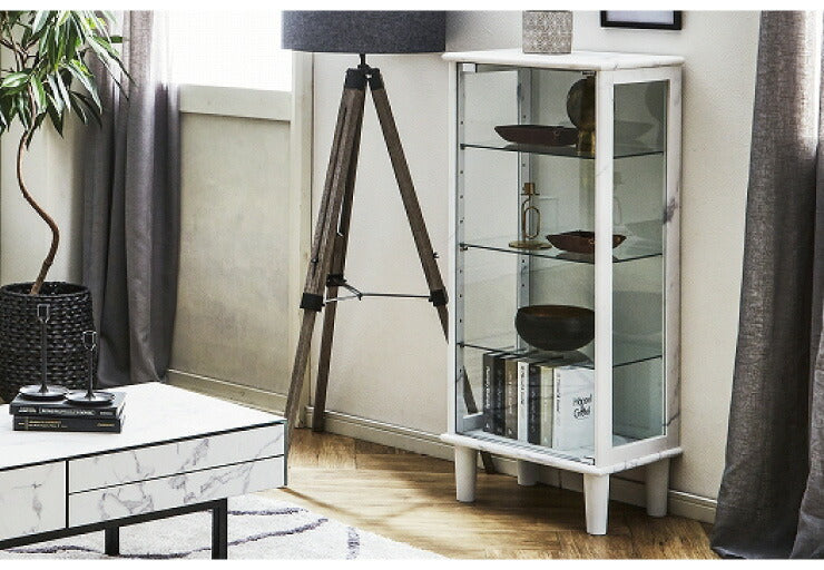 ヨーク50 コレクションラック コレクションケース 幅50 奥行35 高115 石目調 完成品 大理石風 ホワイト 白 ブラック(代引不可)