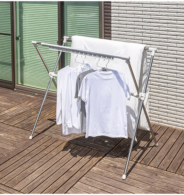 屋外、室内どちらでもシンプルに使えるX型ふとん干しです。