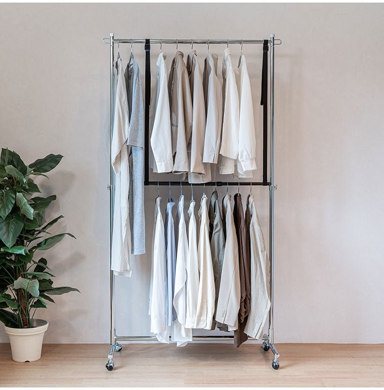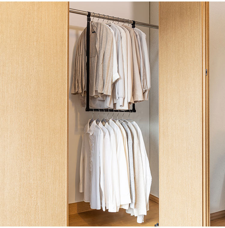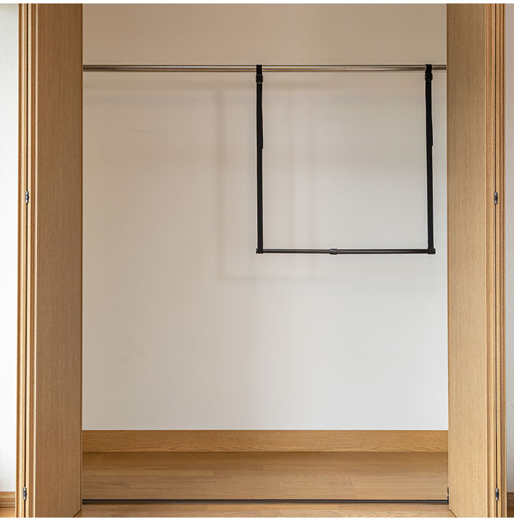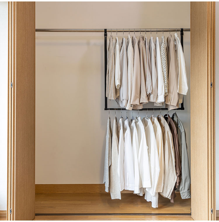 クローゼットなどのバーに吊り下げるだけで収納力がアップ。