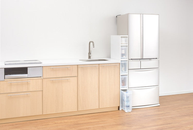 幅17cmのスリムタイプで、キッチンや洗面所などあらゆるシーンでのストック収納におすすめです。
