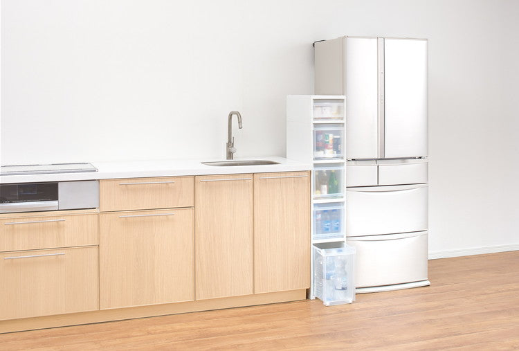 最下段の引出しはボトルを入れてもラクに引き出せるローラー付きです。