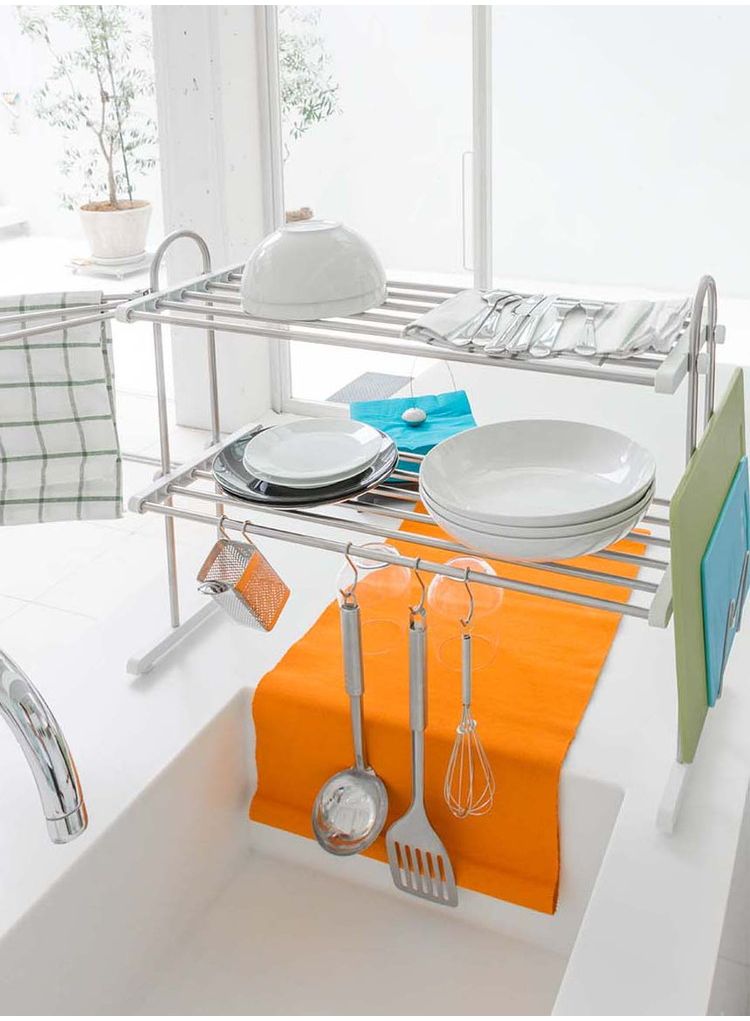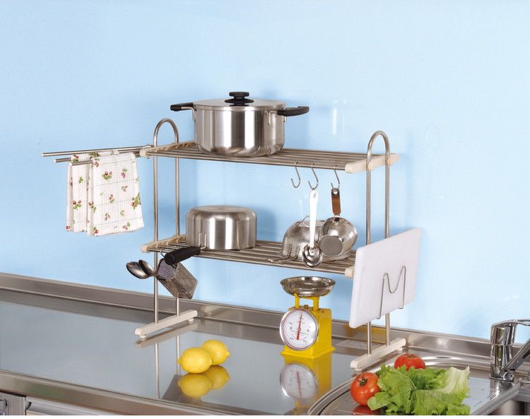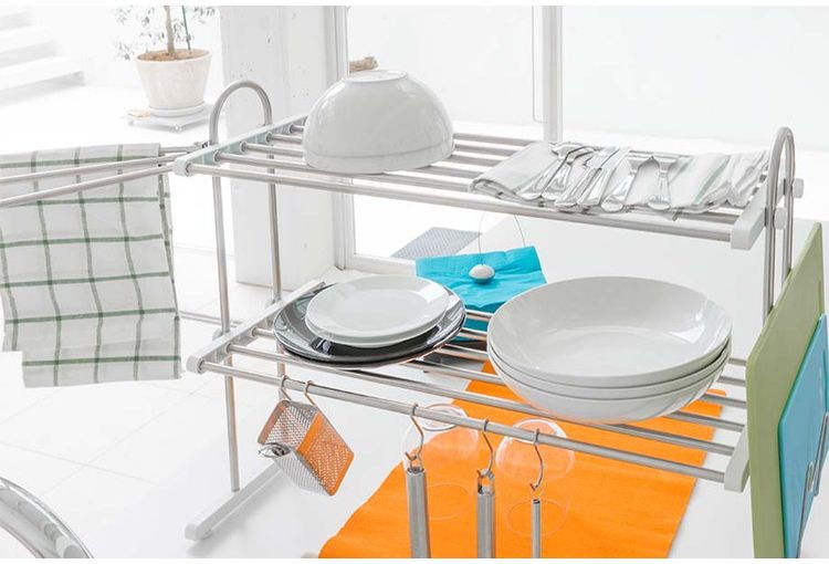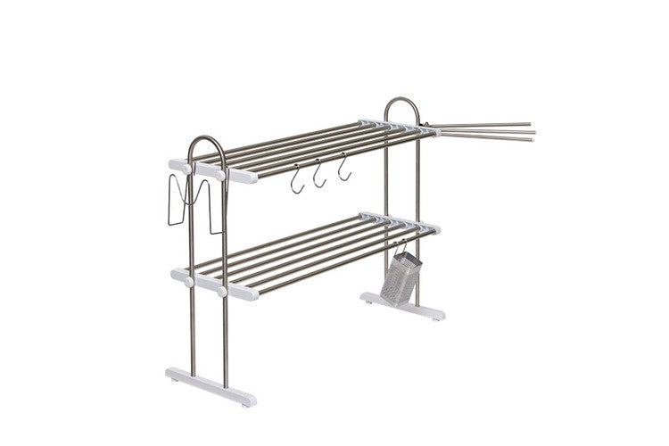 水切りラック 2段 水切り棚 ふきん掛け/フック/箸立て/まな板スタンド 付属 キッチンラック キッチン収納 キッチンラック シンク収納 シンプル(代引不可)