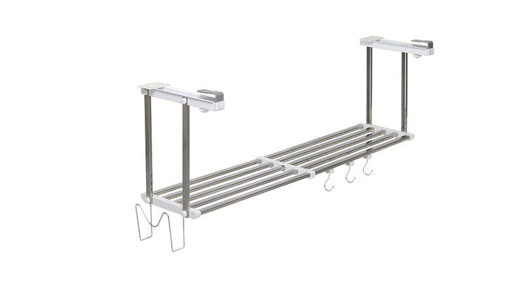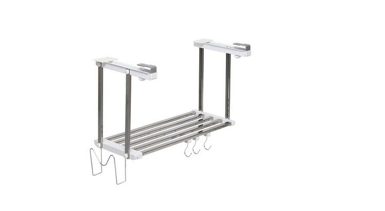 キッチンの吊戸下に設置できる、はさみタイプの水切り棚。