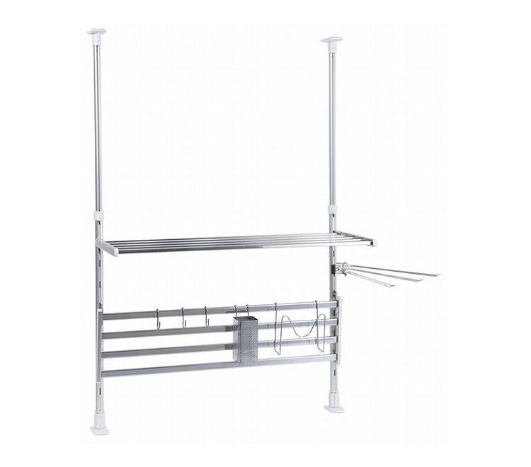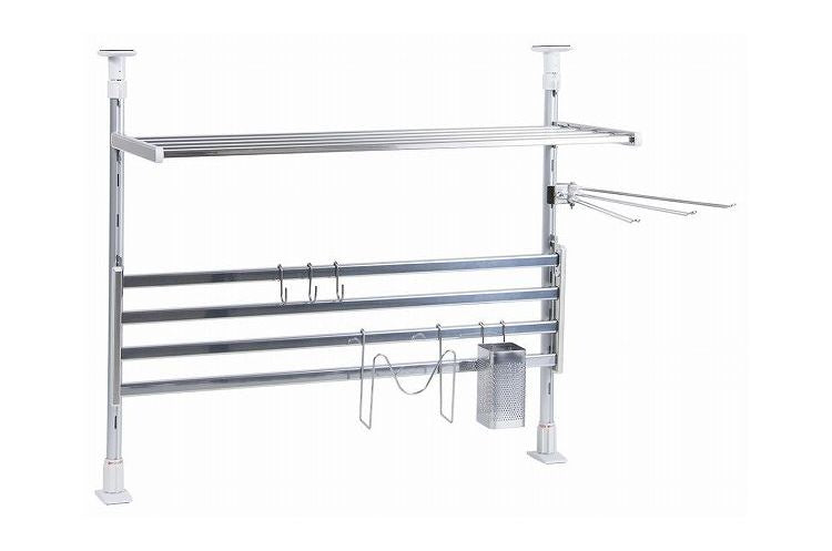 日本製 突っ張り棚 2段 幅61.7cm ふきん掛け/フック/箸立て/まな板スタンド 付属 キッチンラック 突っ張りラック つっぱりラック キッチン収納 キッチンラック 壁面収納 シンク収納 シンプル(代引不可)