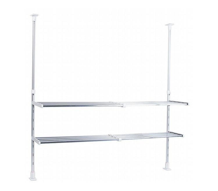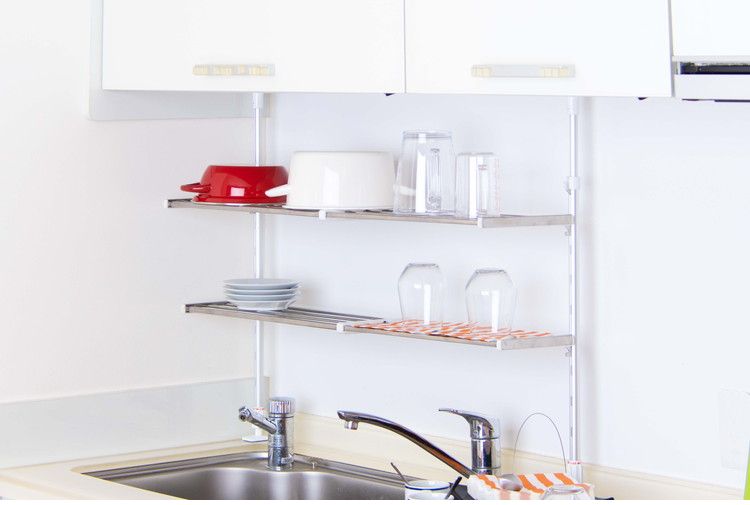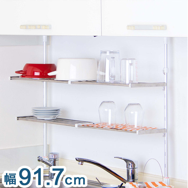 伸縮式 突っ張り棚 2段 水切り棚 水切りラック キッチンラック 突っ張りラック つっぱりラック キッチン収納 キッチンラック 壁面収納 シンク収納 シンプル(代引不可)