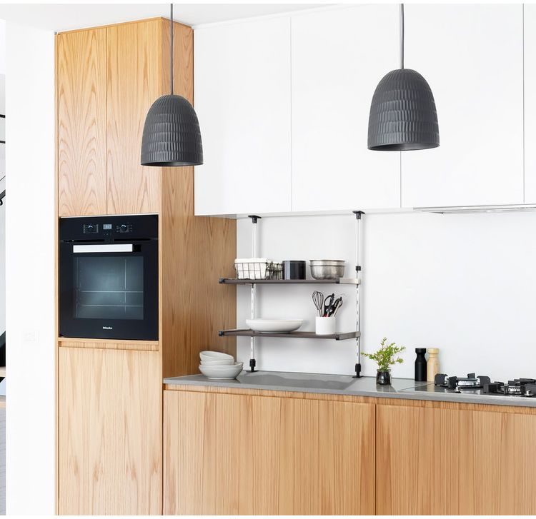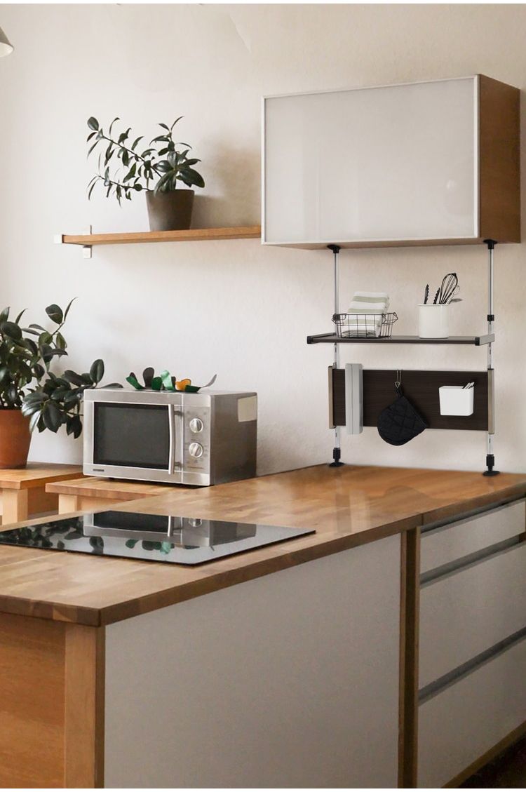 戸棚下を有効活用し、2段ラックでスッキリ収納。