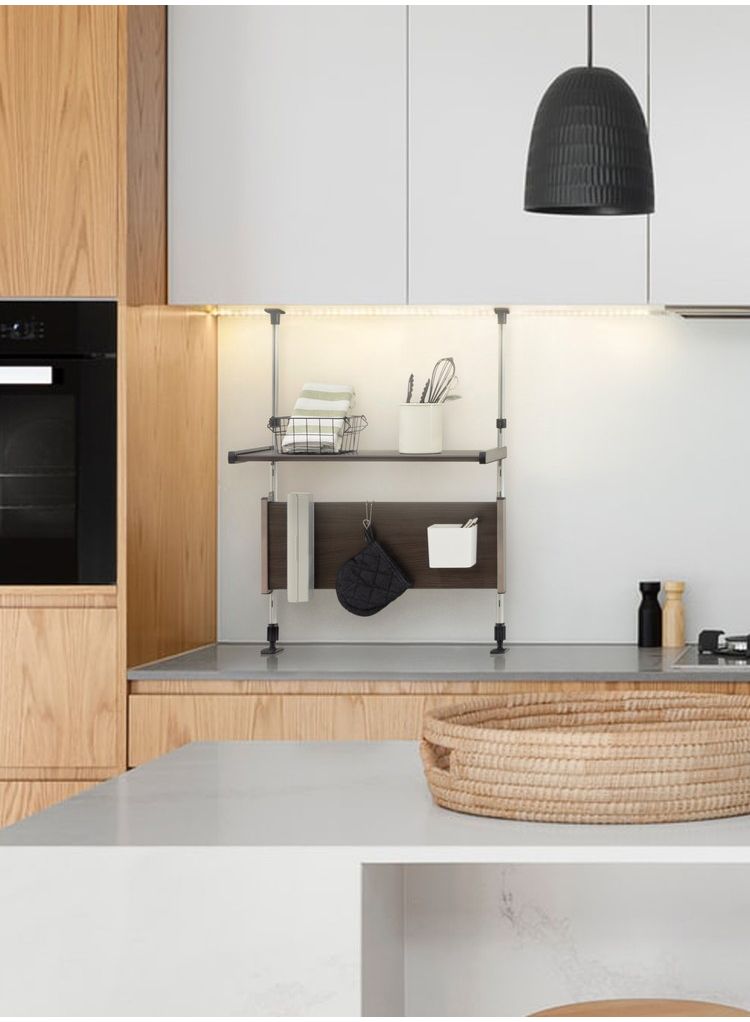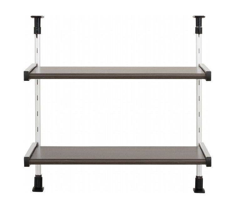 日本製 木目調スチール キッチン突っ張りラック 2段 幅55.6cm つっぱりラック 突っ張り棚 キッチン収納 キッチンラック 壁面収納 シンク収納 モクメタル おしゃれ(代引不可)
