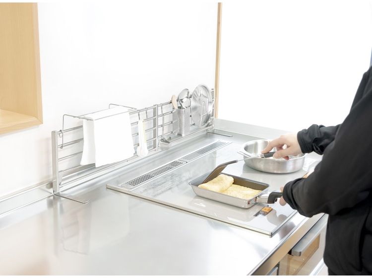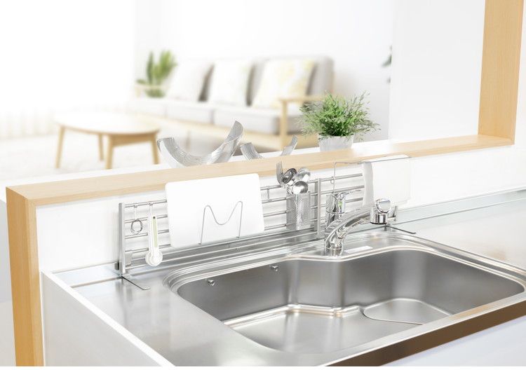 まな板受け・棚用フック3本・角ポケット(小)・クロスハンガー付。