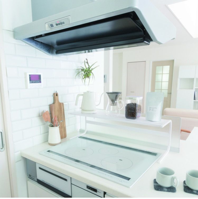コンロ奥ラック 60cmコンロ用 キッチンアシストラック 頑丈 スチール製 収納 マグネット対応 キッチン収納 コンロラック 収納ラック カウンター上収納 白 ホワイト(代引不可)