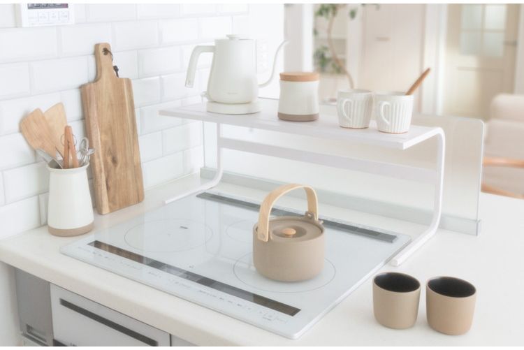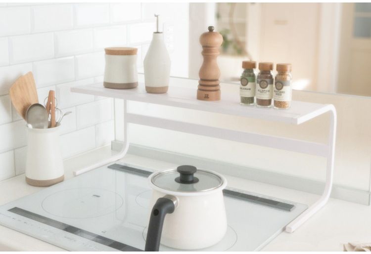 ビルトインIHコンロの奥側のスペースを活用することで収納が広がります。