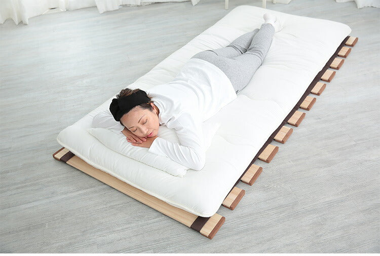 薄型軽量設計のすのこベッドを布団の下に敷くだけ簡単。
