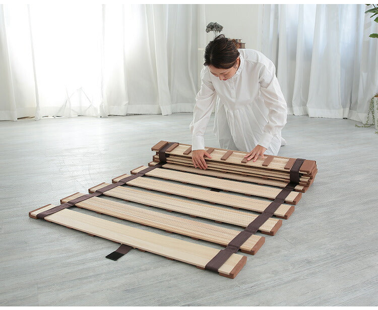 天然木 桐製 ロール式すのこベッド ダブル 幅140 軽量 ロールタイプ 折りたたみベッド 薄型 すのこベッド 木製 ベッド コンパクト 省スペース(代引不可)