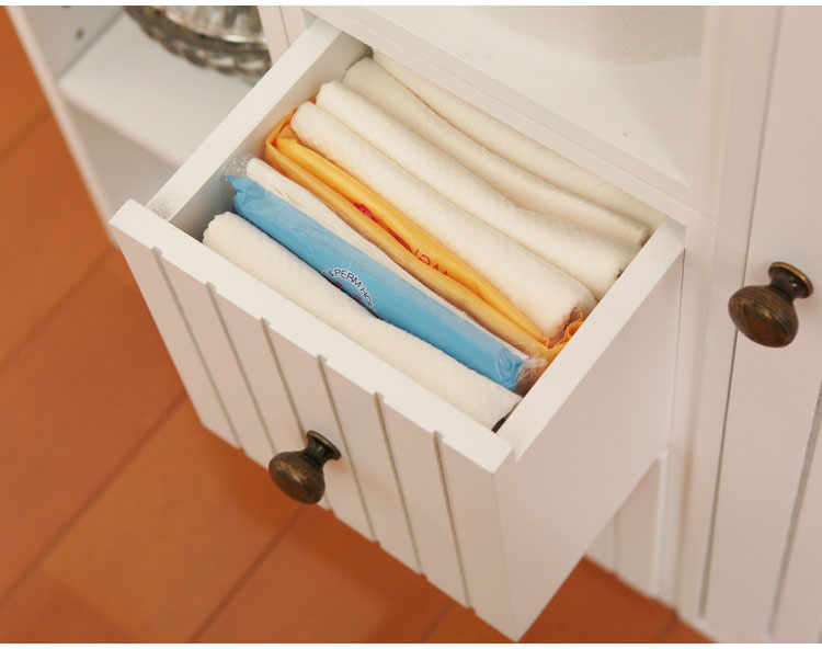 羽目板風デザインに、おしゃれな金属取っ手を合わせた引き出しタイプ。