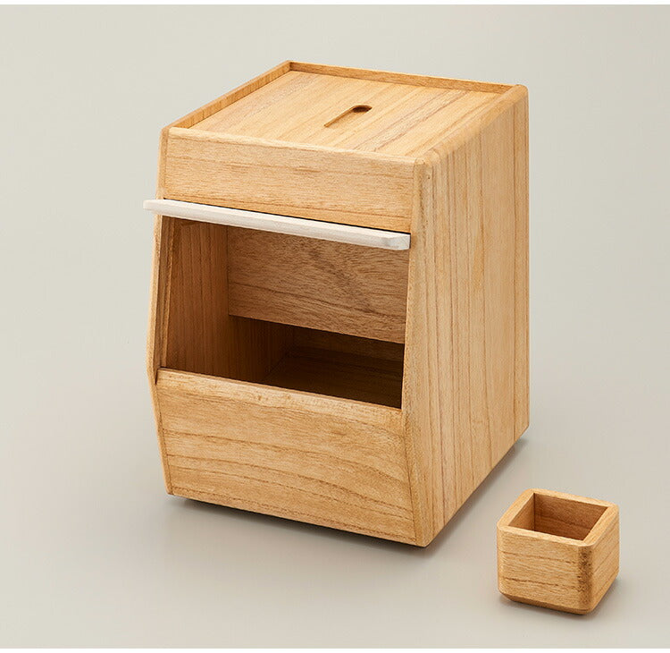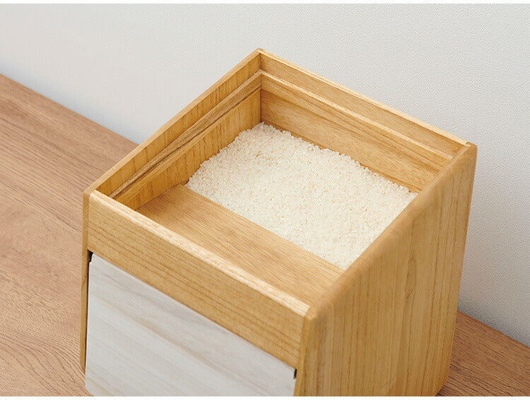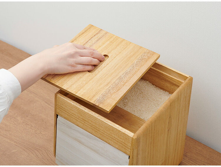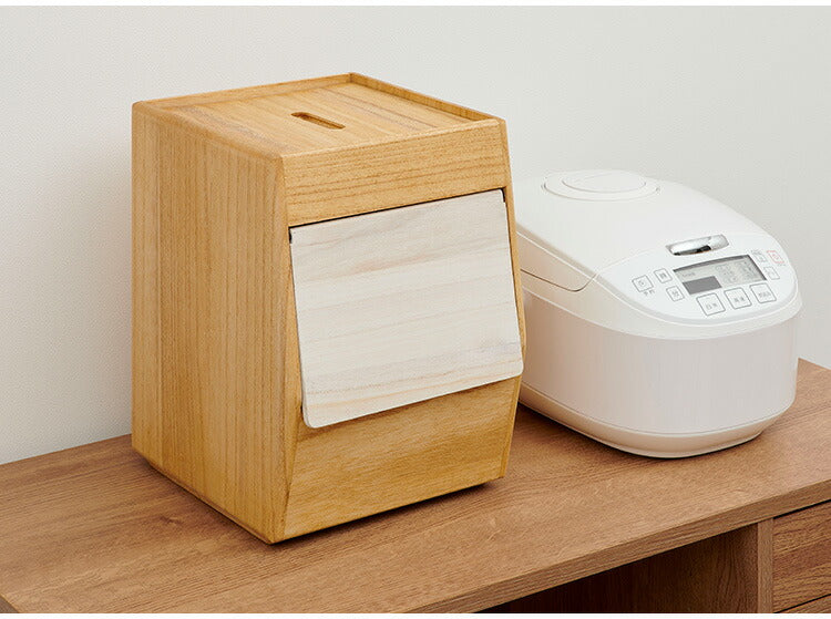 コンパクトな桐製の米びつ。