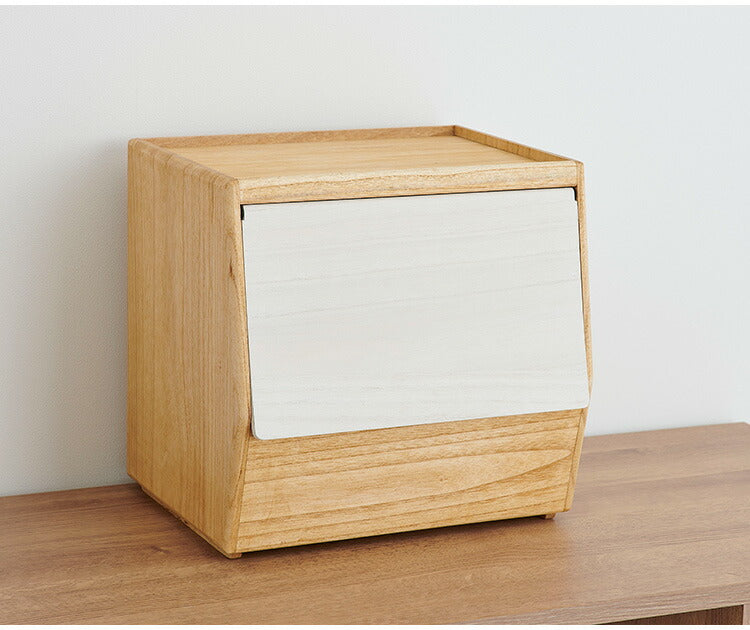 ■片手で開閉できるフラップ式の収納扉。前から取り出せる為、置き場所を選びません。