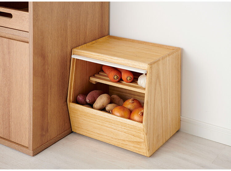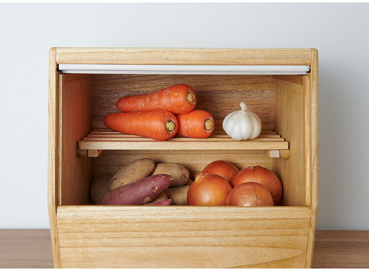 調湿性に優れ、スノコ板付きで通気性も良く、根菜などの保存に最適です。