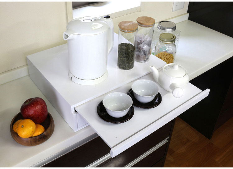 使う時だけ現れる引き出し&ちょい置きテーブル。