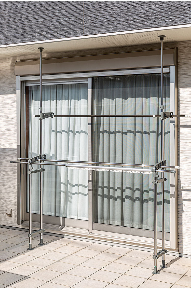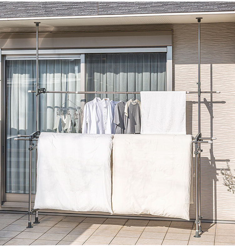 Wポール支柱で安定性/通気性良くふとんが干せます。