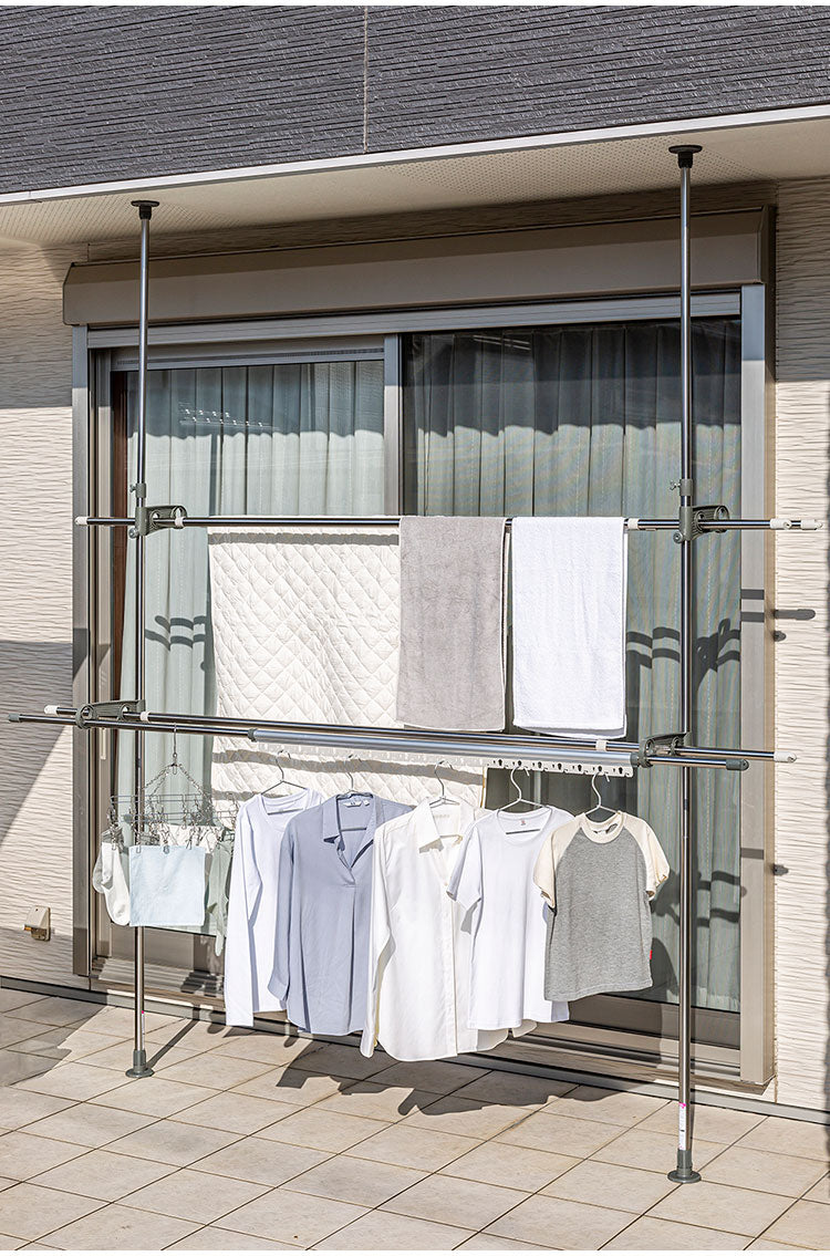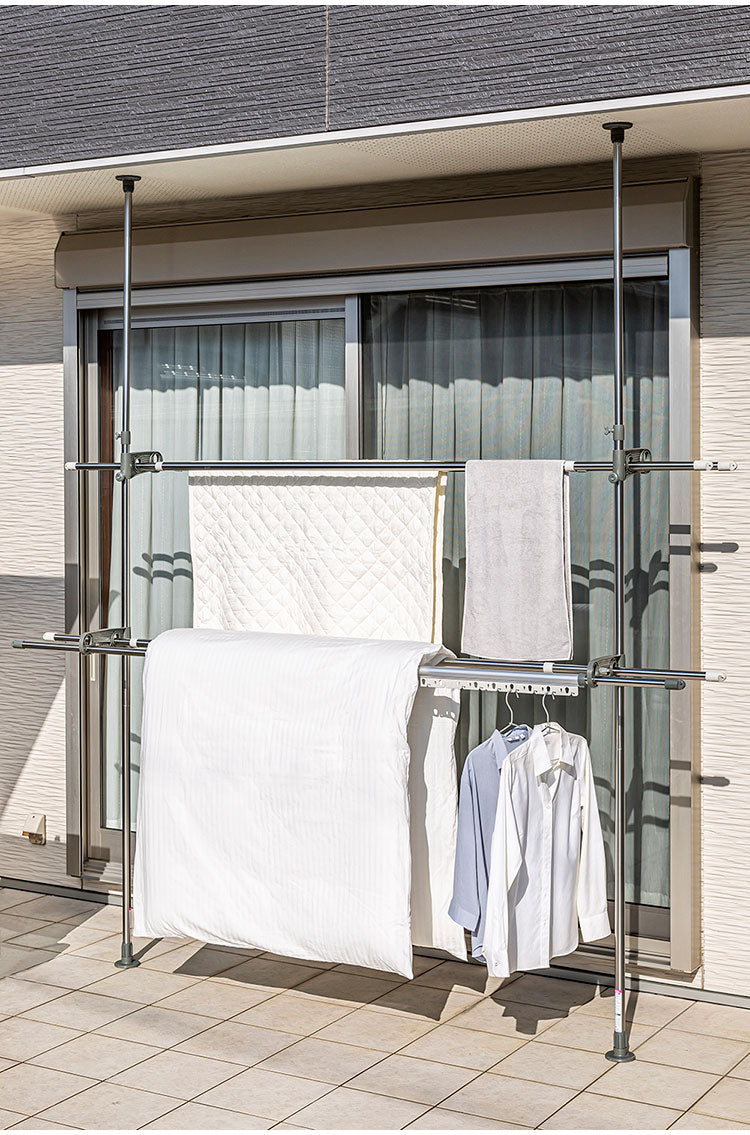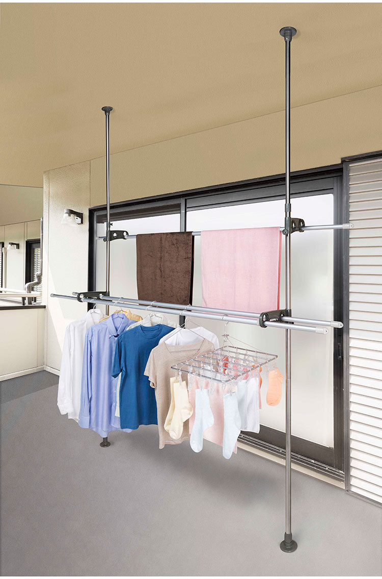天井と床に圧着取付するつっぱり式のものほし台です。