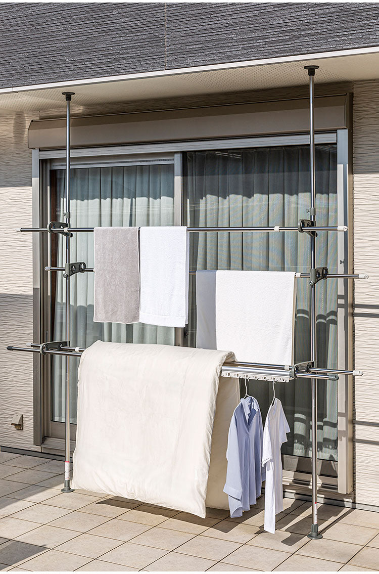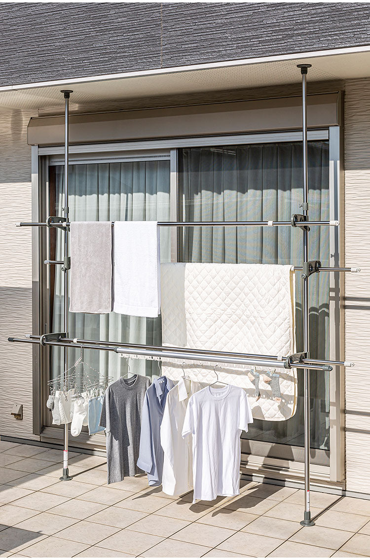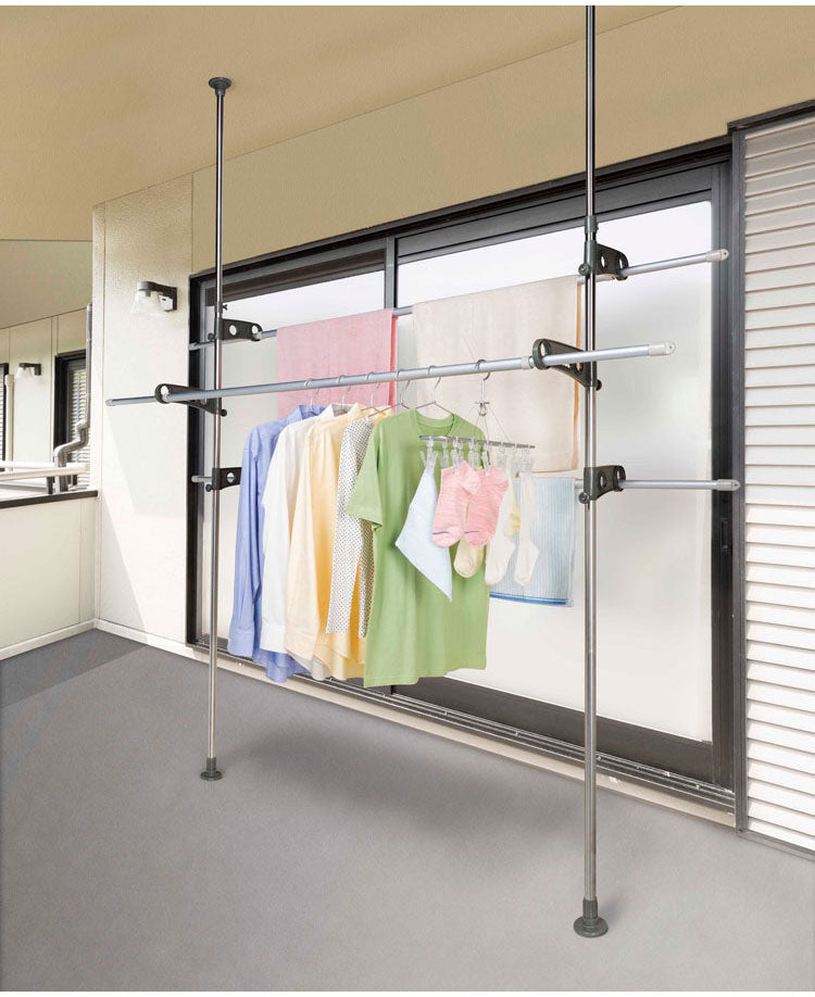 天井と床に圧着取付つっぱり式のものほし台です。
