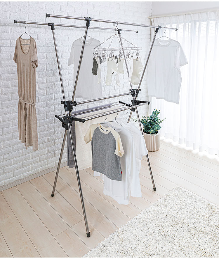 スペースや干し物の量に合わせて高さ、幅が伸縮します。
