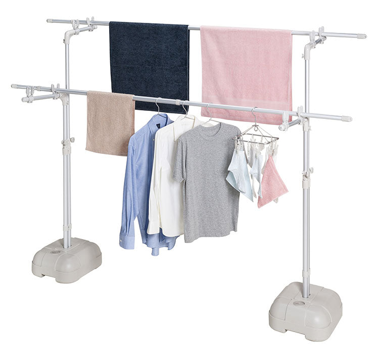 砂や水を入れて安定性抜群のブロー台付きものほし。
