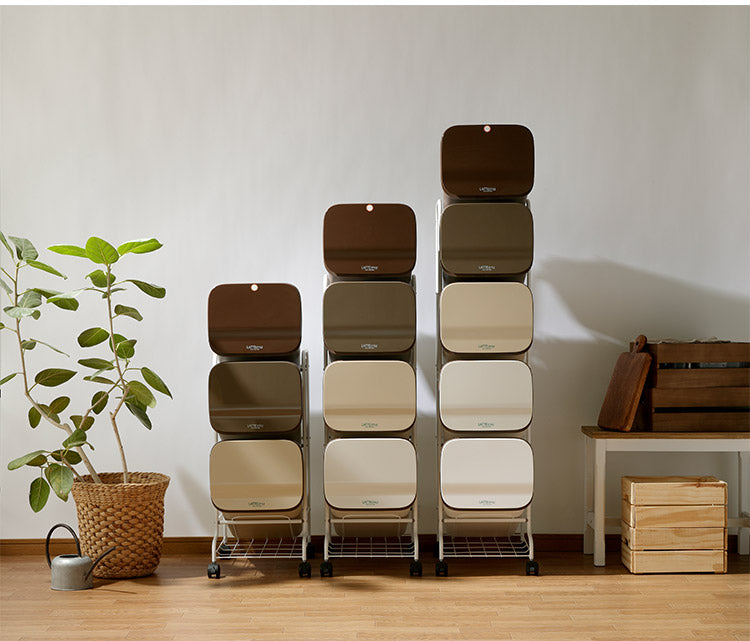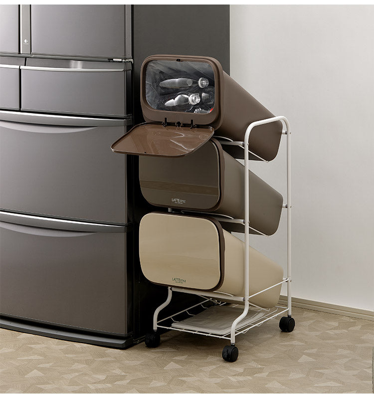 ゴミ箱 ごみ箱 縦型 19L×3分別 スリム 幅34cm 20L袋用 ダストボックス キャスター プッシュ式 フラップ フタ付き ふた付き ペール 隙間 すき間 缶 ビン ペットボトル(代引不可)