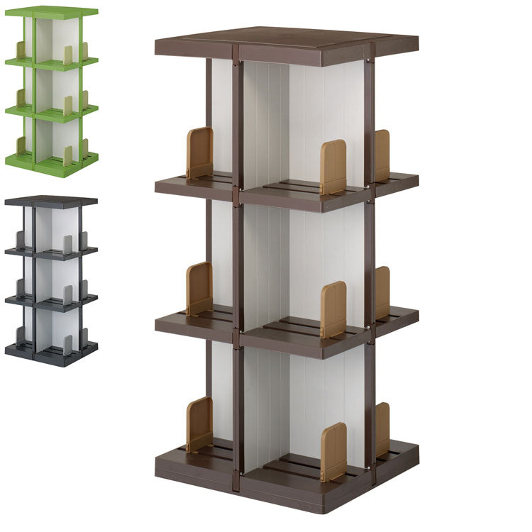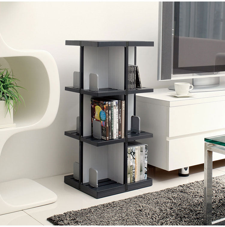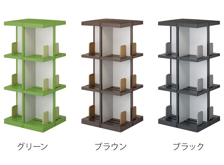 日本製 回転式ラック デビック 3段 本棚 コミック A5サイズ 同人誌 DVD ビデオ CD ゲームソフト 大容量 ディスプレイラック シェルフ(代引不可)