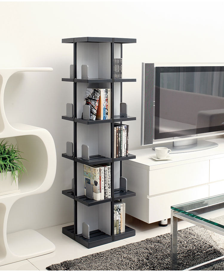 日本製 回転式ラック デビック 5段 本棚 コミック A5サイズ 同人誌 DVD ビデオ CD ゲームソフト 大容量 ディスプレイラック シェルフ(代引不可)