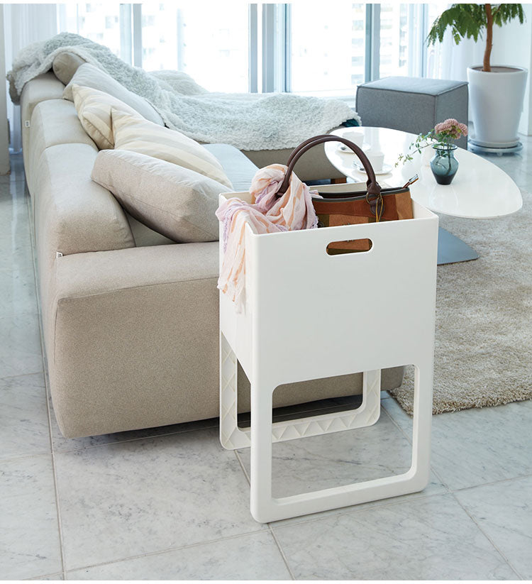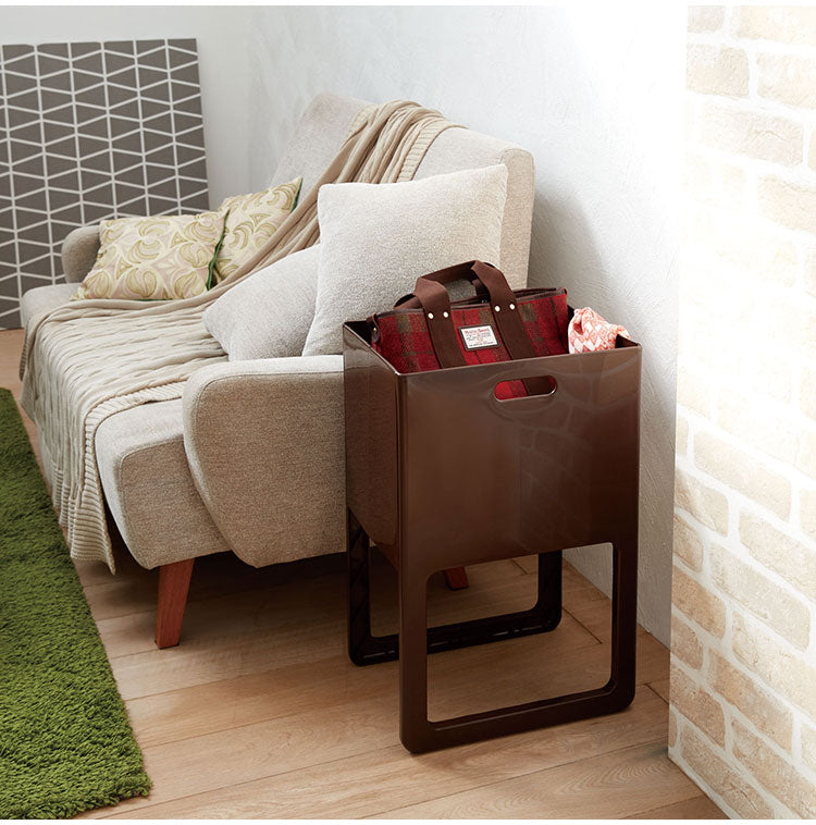 チョイ置きしたくなるバッグや新聞、雑誌などの収納に。