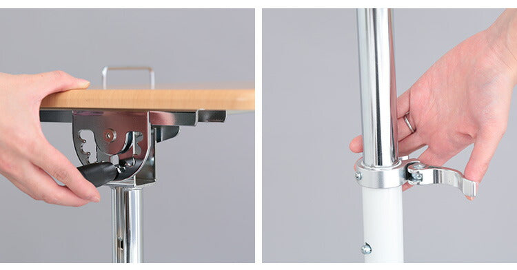 側面のレバーを握って天板を倒すだけの簡単仕様。