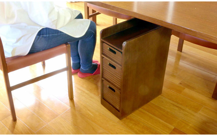 テーブル下に入り、場所をとらず邪魔になりにくい。