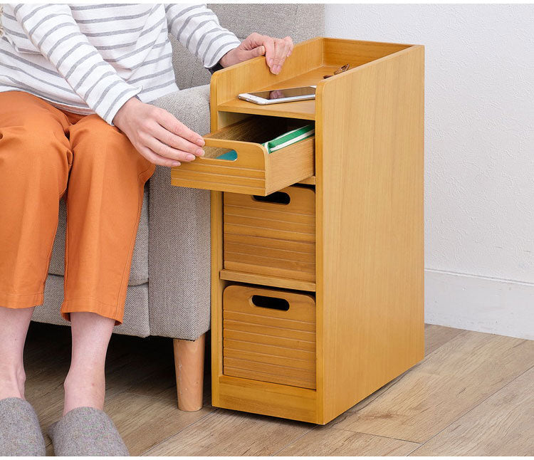 天然木桐材の軽量トレイワゴン 幅20×3段 完成品 隠しキャスター 収納ワゴン トレー 棚 収納 ラック チェスト ワゴン サイドテーブル リビング 寝室 玄関 棚板 可動式 高さ調節可能 トレイ 持ち運び(代引不可)