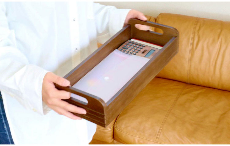 天然木桐材で軽量なので、中に収納物を入れてもラクにトレイを持ち運べます。