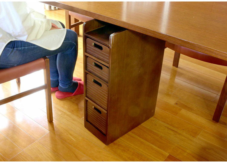 テーブル下に入り、場所をとらず邪魔になりにくい。