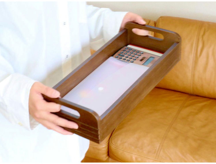 天然木桐材で軽量なので、中に収納物を入れてもラクにトレイを持ち運べます。