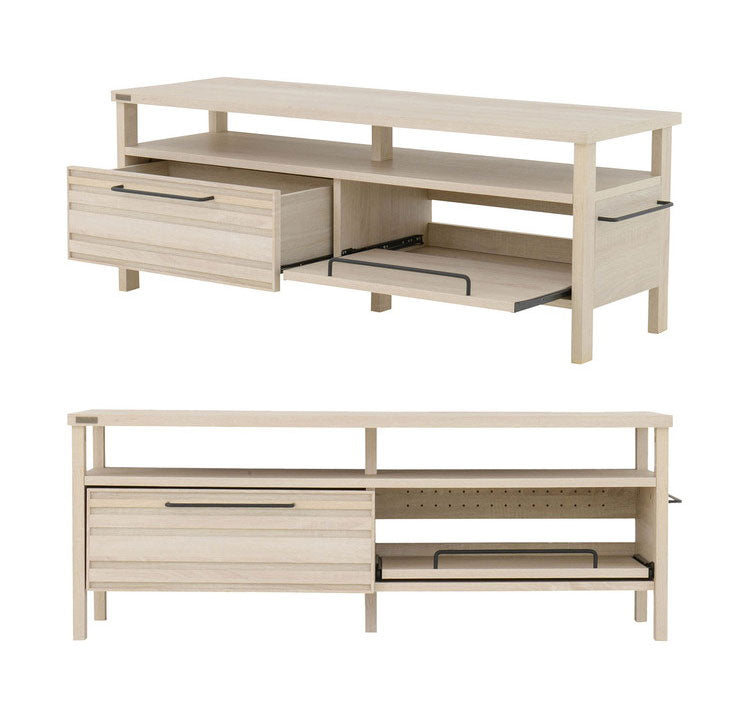 ローボードに引き出しやスライドできる棚がついた、多機能TVボード。ゲーム機やAV機器など、よく手に取るものはスライド棚に置いて、見せながら効率良く。引き出しにはDVDなどを収納。ホワイトインテリアやモノトーンインテリア、北欧インテリア、ナチュラルテイストがお好きな方におすすめ。