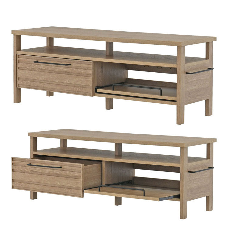 ローボードに引き出しやスライドできる棚がついた、多機能TVボード。ゲーム機やAV機器など、よく手に取るものはスライド棚に置いて、見せながら効率良く。引き出しにはDVDなどを収納。ホワイトインテリアやモノトーンインテリア、北欧インテリア、ナチュラルテイストがお好きな方におすすめ。