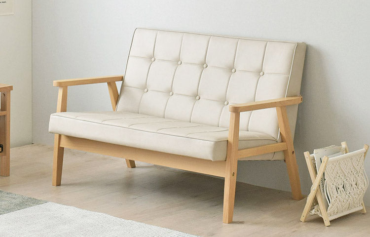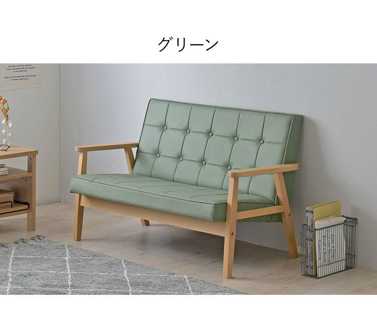 2人掛けソファー 肘付き 幅113.5cm 奥行70cm 高さ72cm 省スペース 合皮 木製 かわいい sofa 北欧 韓国インテリア レトロ シック ROCOLOR ロコラ(代引不可)