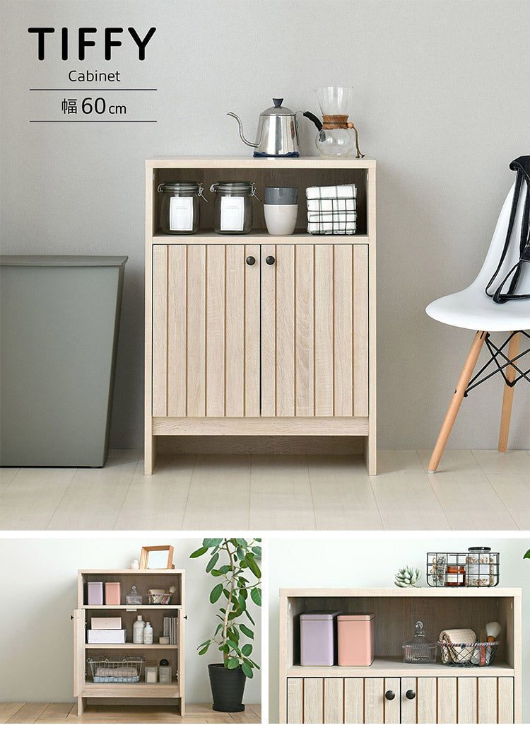 リビングボード おしゃれ 食器棚 棚 リビングボード カントリー調 サイドボード 北欧 幅60cm 60cm 収納 木製 北欧 収納家具 TIFFY ティフィー(代引不可)