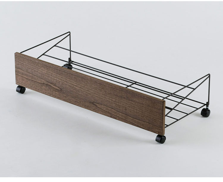 玄関の靴箱下スペースを有効活用できるワゴン。2段の棚に約8足の靴を収納できます。キャスター付で出し入れもスムーズに行えます。前板で中身が見えにくい仕様。生活感を隠してくれます。