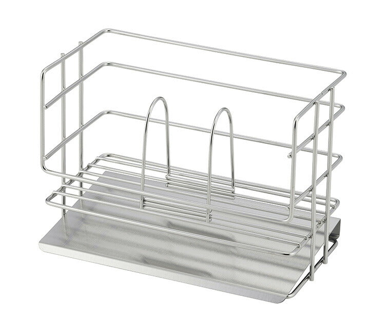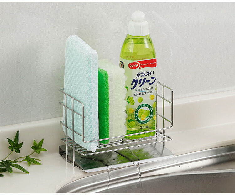シンク周りでの洗剤・スポンジ類の整理収納に。斜めトレーなので、水が流れ落ちやすく、お手入れも楽です。