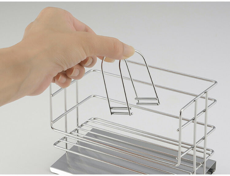 下村企販 日本製 燕三条 斜めトレー付洗剤スポンジラック ミニ 水切りラック 水切りかご ステンレス ラック 棚 シンク周り 整頓 収納 スポンジラック 洗剤ラック キッチン収納