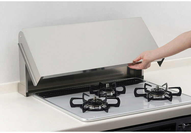ビルトインコンロやIHクッキングヒーターに被せ、作業スペースを拡大できます。コンロ使用時は折りたたんで立てられます。圧迫感がなく、壁への油はねも防ぎます。オールステンレス製で見た目も美しいです。お菓子作りやパン作りなど、場所をとる作業の時に便利です。猫などペットのいたずら防止にも役立ちます。