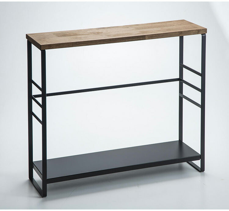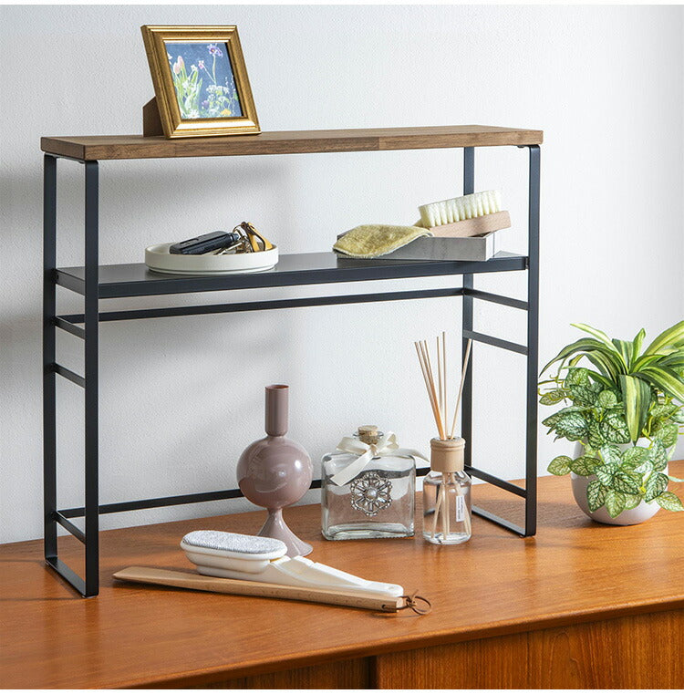 奥行15cmのスリムラック。キッチンでのスパイスやツール、コーヒーや紅茶の収納に。木目が美しいラバーウッドと黒色の組合せでシックな雰囲気です。みせる収納、ディスプレイとしての役割も果たしてくれます。玄関やリビングでの使用もおすすめです。